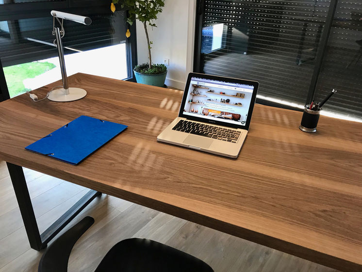 J'ai profité de mon emménagement dans de nouveaux locaux pour enfin réaliser le bureau en noyer que je souhaitais, aux dimensions dont j'ai besoin.